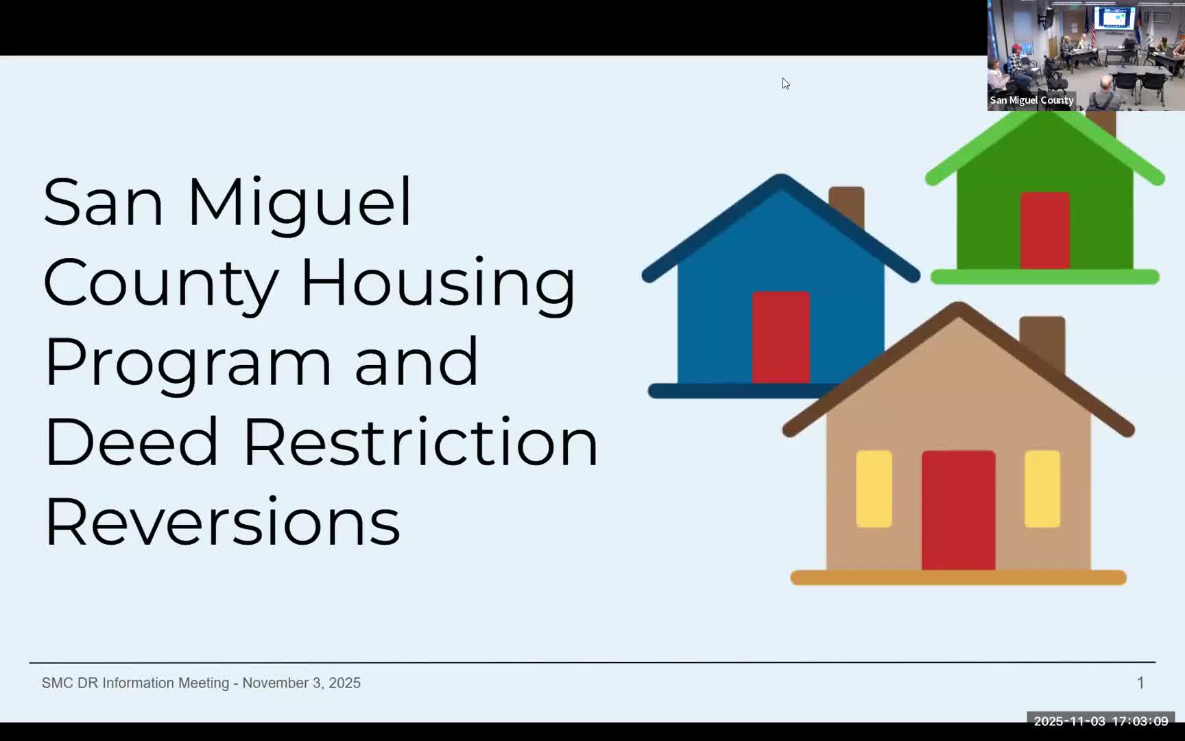 San Miguel County officials on Wednesday laid out a new, one-time pathway for many owners of deed‑restricted homes to change the restrictions that govern who may live in or buy those properties. Deputy County Manager Jared Biggs said the board adopted Resolution 2025-23 in September to provide an “option to revert” after legal review of how deed restrictions apply.