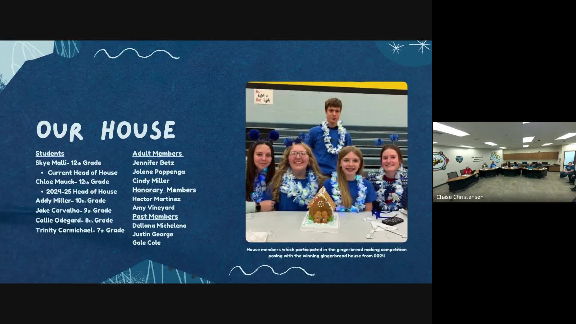 Skye, a student serving as head of her house, described the system’s values of bravery, unity and readiness to protect and said the house structures "allow for one small voice to make a big impact in our school." The presentation emphasized inclusive competition, varied activities so "every student gets a chance to shine," and thanked staff and board members for support.