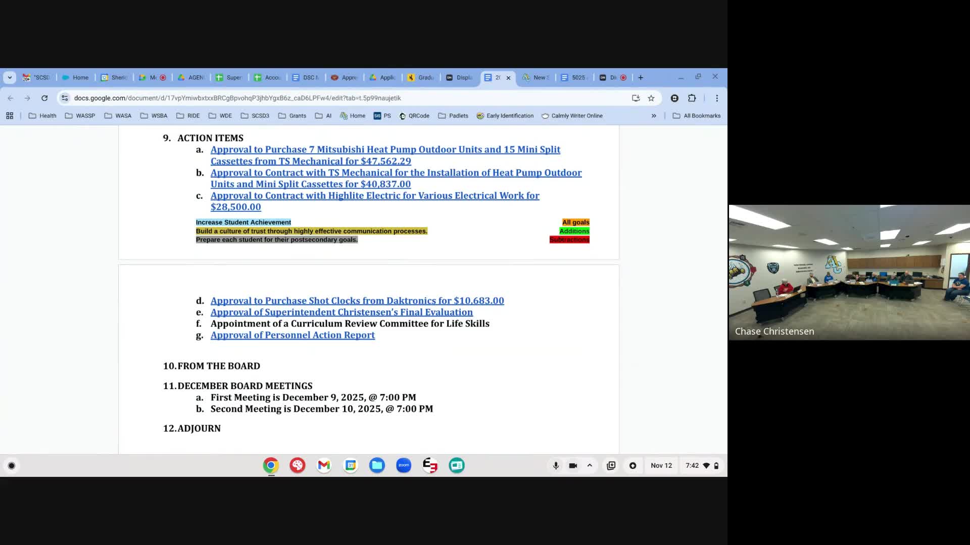 Trustees approved purchasing shot‑clock displays from Daktronics for $10,682 after administrators warned the Wyoming High School Activities Association mandate could make the district ineligible to host varsity competitions if clocks are not installed by the required date.