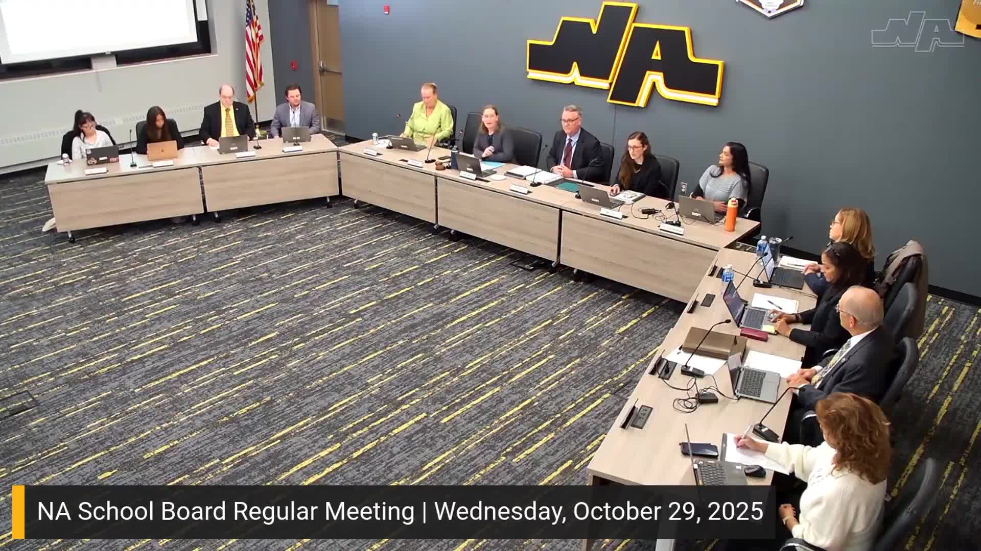 Board members described the CBA as valuing teachers and other professional staff while supporting long-term fiscal planning. "I'm quite pleased with the result of these negotiations, and I'm very grateful to doctor Hyland and mister Harrell and the administrative team and the NAF team for working together through this collaborative process," the presiding officer said during comment on the item.