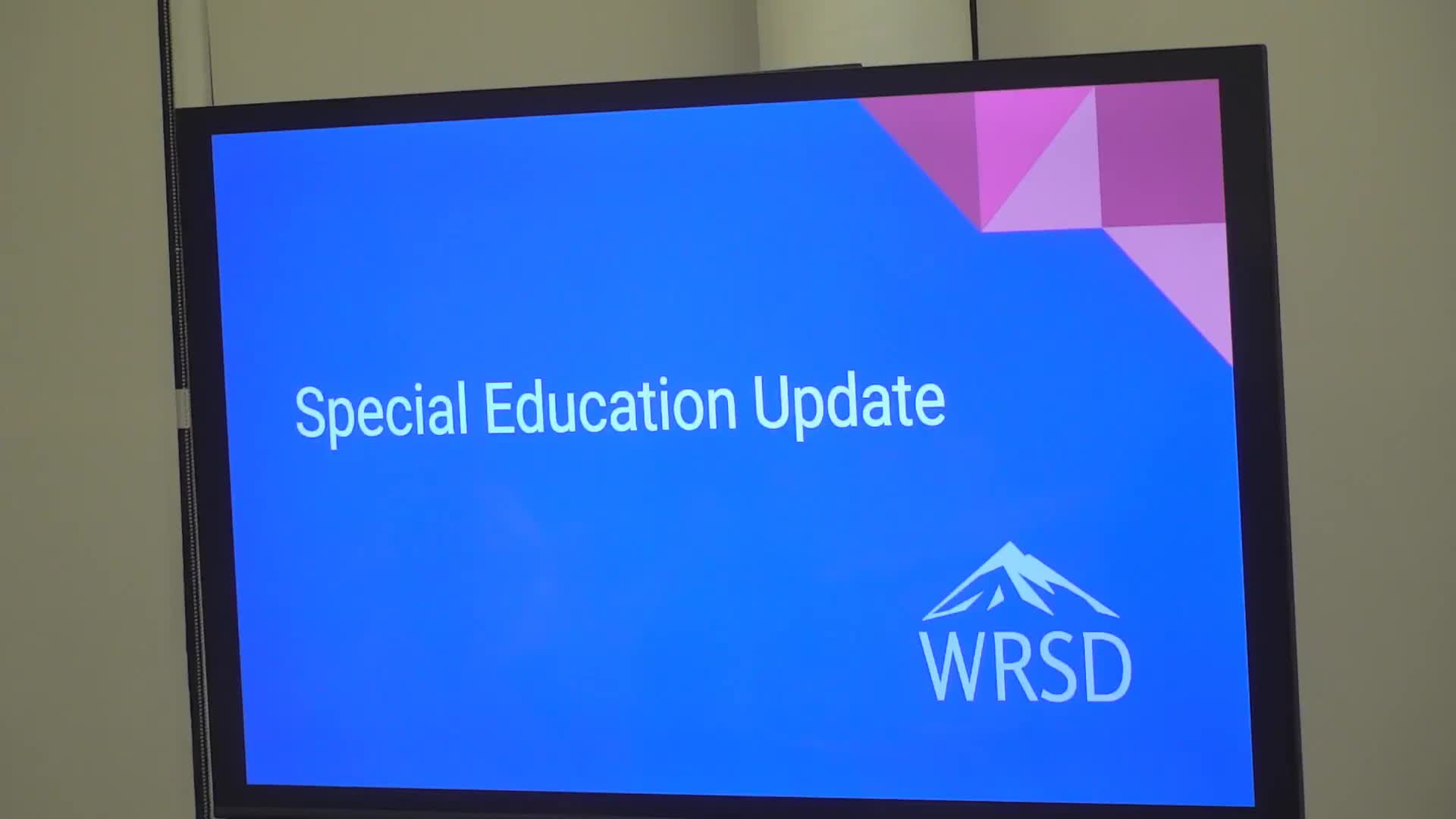 The director said the district has about 1,100 students on individualized education programs across 13 schools and credited a technology‑driven service‑delivery report with helping identify service needs by building. She described new team‑chair roles in each school, co‑teaching expansion, program renaming and expanded inclusive and unified course offerings at the middle and high school levels.