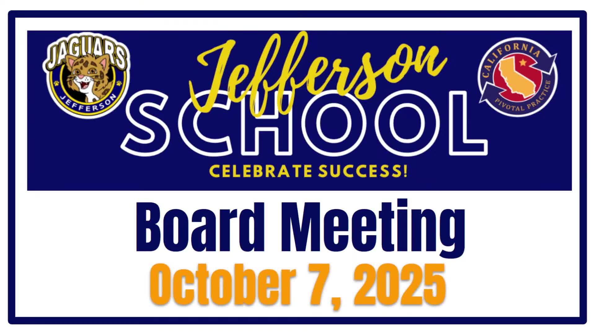 Robert Estrada, principal of Jefferson Elementary School, presented the school's 2025–26 theme "Together, we grow," described its tiered system of academic and social-emotional supports, and highlighted awards and student recognitions.