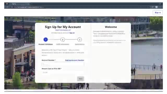 City staff said customers can start enrollment by entering an account number or by clicking a "find my account number" link, or by following an emailed invitation from noreply_waterbilling@gptx.org that includes a green "register" button to open an enrollment form. After logging in, users can take a guided tour (the announcement referred to a taxi icon) and set up pre-authorized payments, sign up for paperless billing, check current balances, or make one-time payments. The portal also allows consumers to view payment history and statement history and to begin move-in or move-out processes without logging in.
