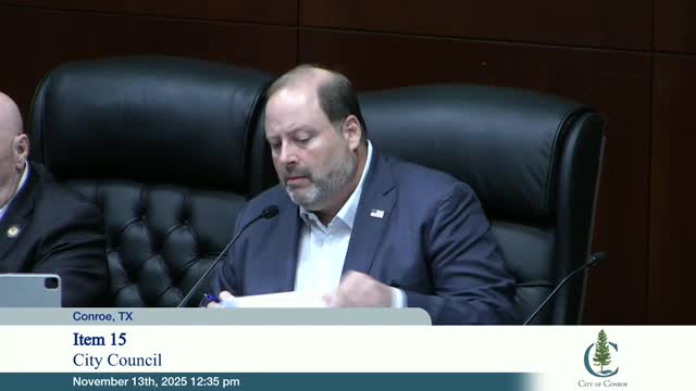 The Conroe City Council voted on Nov. 13 to purchase a 12.8439‑acre property at 100 Plantation Drive for $5,594,802.84, authorizing the mayor to sign closing documents and to approve up to $425,000 in demolition and environmental remediation costs.