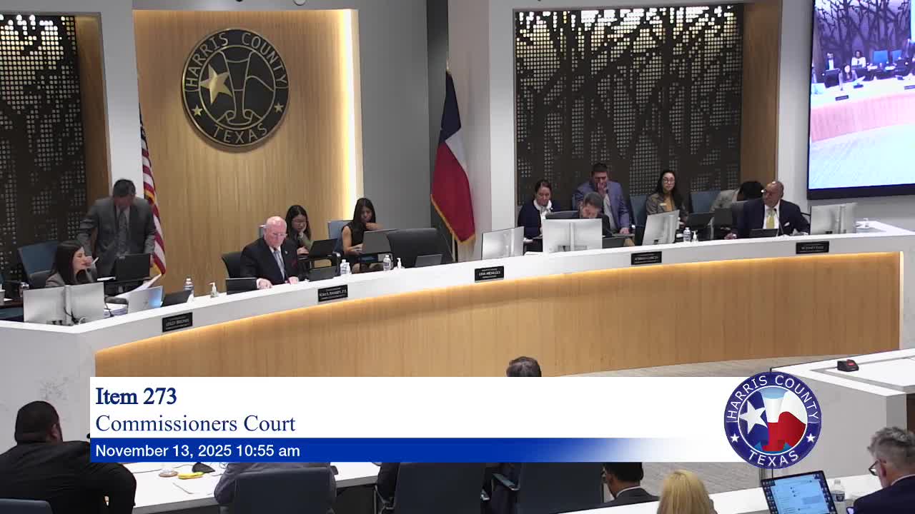 Harris County Commissioners Court voted to appoint Associate Judge Jermaine Thomas as the first judge of the newly created Harris County Civil Court at Law No. 5 and directed county departments to complete administrative steps to effectuate the appointment.