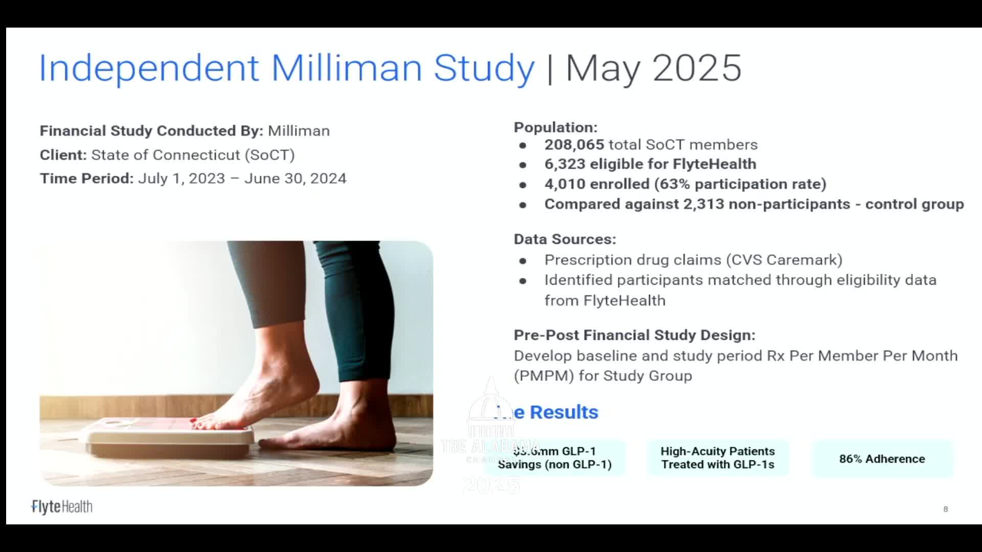 Dr. Saunders described a closed‑network, acuity‑based pilot run for a Connecticut state employee health program that reportedly achieved 86% adherence among about 4,000 participants and roughly $3,000,000 in annualized cost avoidance; she cautioned two‑year data are preliminary and implementation details matter for generalizability.