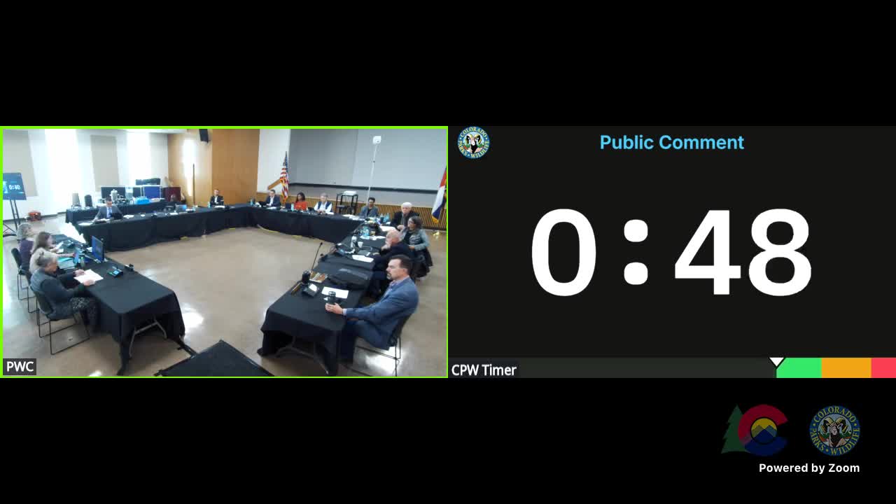 Jan Zinkl called for a formal bison restoration framework, tribal consultation and a full‑time bison biologist to plan habitat and ensure a genetically viable, free‑roaming herd before any hunting is authorized. "We need to restore bison in Colorado for a number of reasons, two of which are historical accountability and moral repair," Zinkl said.