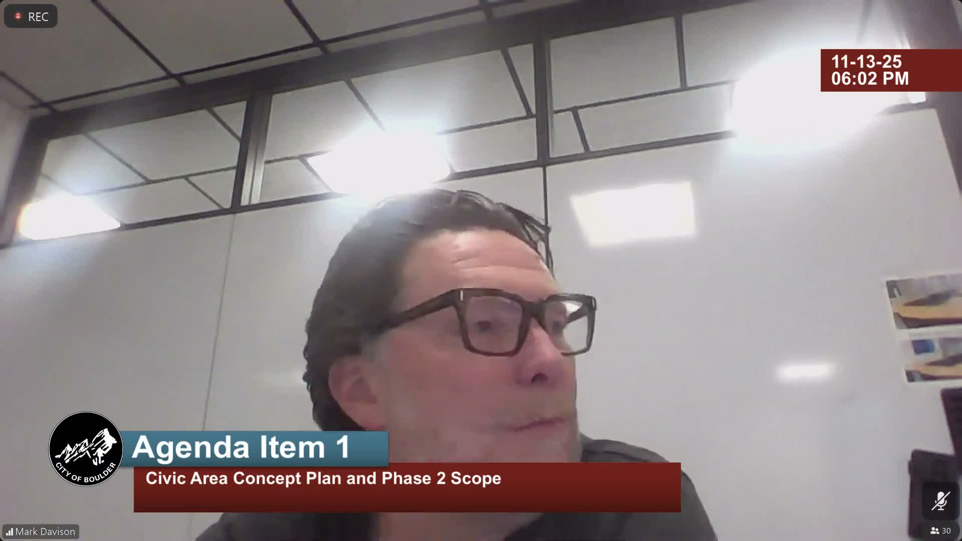 City staff presented a concept plan for Boulder’s Civic Area and recommended advancing a subset of elements into Phase 2 for a staff‑estimated $18,000,000 package. Council praised the design, pressed staff on maintenance, safety, connectivity to the hill and farmer’s market operations, and directed staff to continue design development and partnership planning.