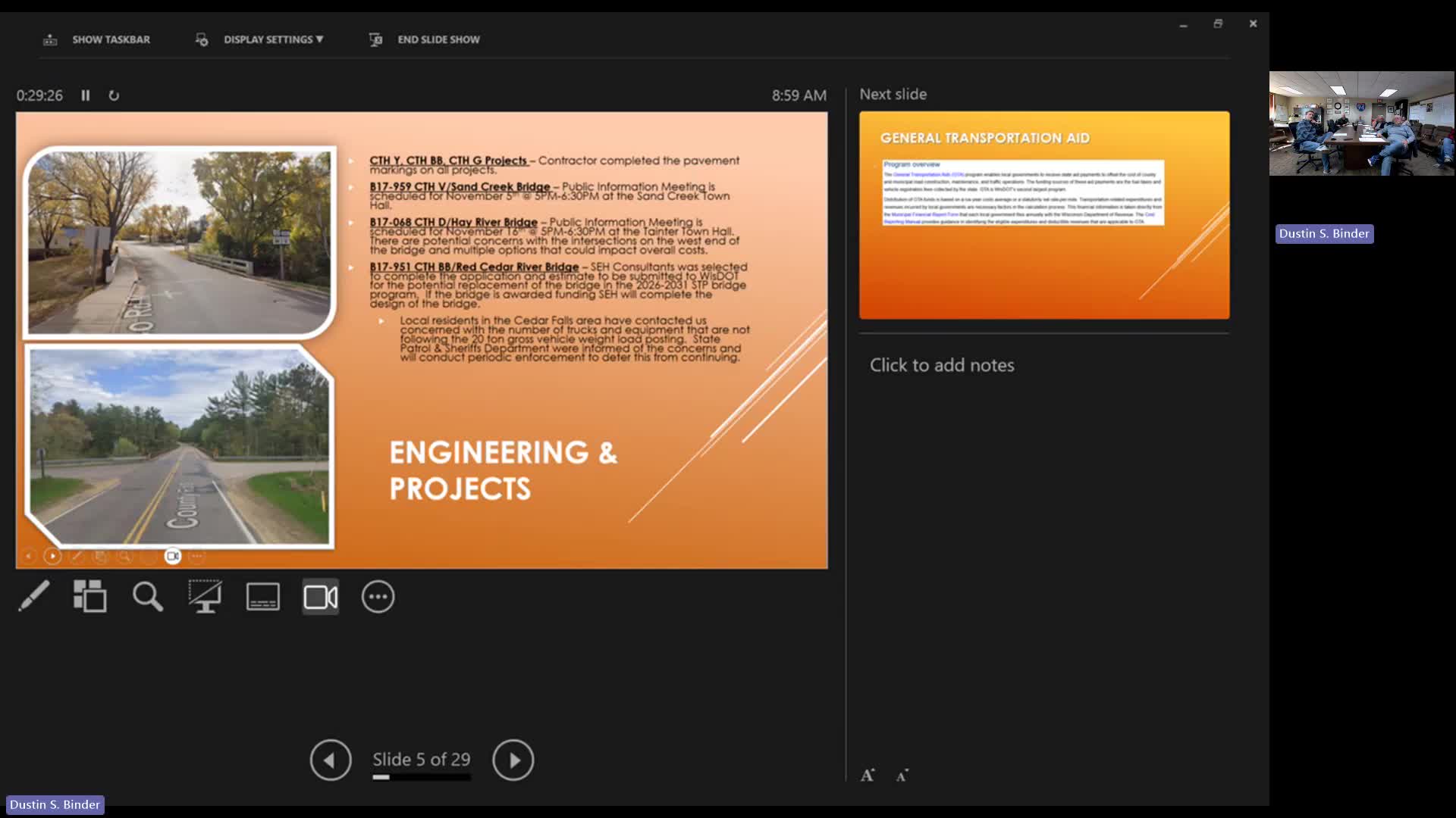 Highway staff told the Dunn County Highway Committee that the Cedar Falls bridge is in a preliminary design stage with consultant estimates of $6 million–$10 million; the county will hold public information meetings and may face an additional $600,000–$1,000,000 local cost if the design requires shifting intersections rather than installing cul‑de‑sacs.