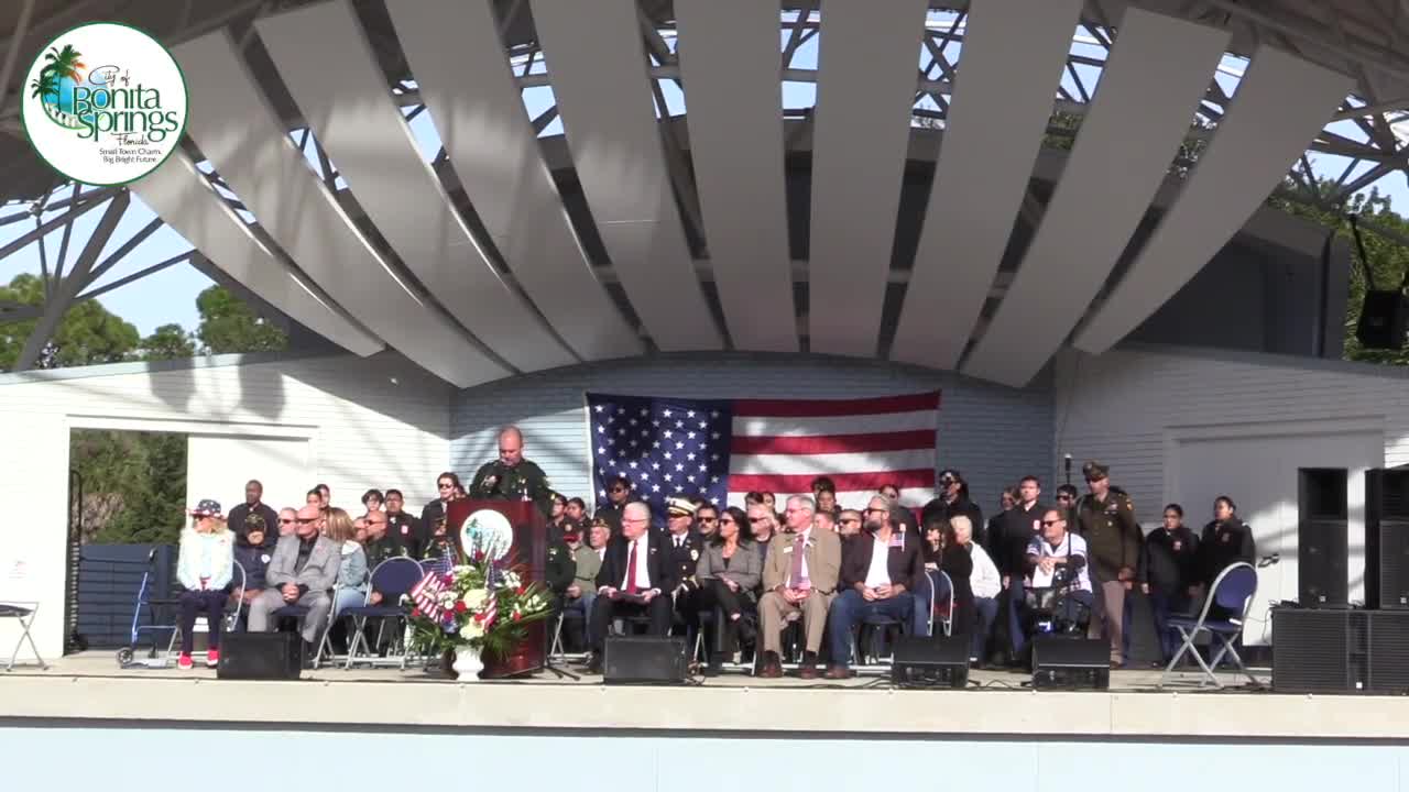 Councilman Nigel Fulop read a proclamation, on behalf of Mayor Mike Gibson and the city council, formally declaring Nov. 11, 2025, Veterans Day in the City of Bonita Springs and urging residents to participate in patriotic ceremonies. ‘‘I, Mike Gibson, mayor, on behalf of the city council and the citizens of Bonita Springs, Florida, do hereby proclaim 11/11/2025 as Veterans Day in the city of Bonita Springs,’’ the proclamation states.