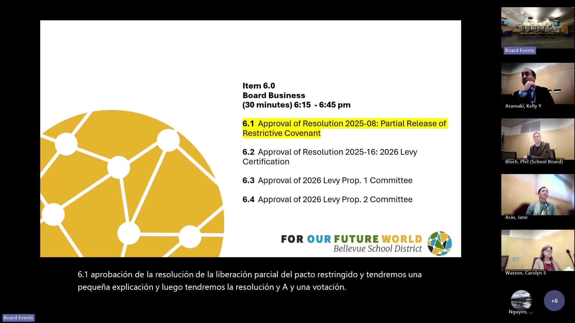 The Bellevue School Board on Nov. 13 approved a series of routine but consequential business actions, including a resolution to partially release a restrictive covenant on surplus Ashwood Elementary property to permit a small Sound Transit easement, annual levy certification, and appointments to levy pro committees.