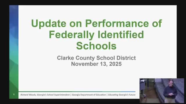 District leaders told the Clarke County School Board they are intensifying supports for schools on federally identified lists — Holston and Witt Davis elementary (Comprehensive Support and Improvement), COIL (ATSI/TSI for students with disabilities), and Classic City (Targeted Support and Improvement for African American and economically disadvantaged student groups).