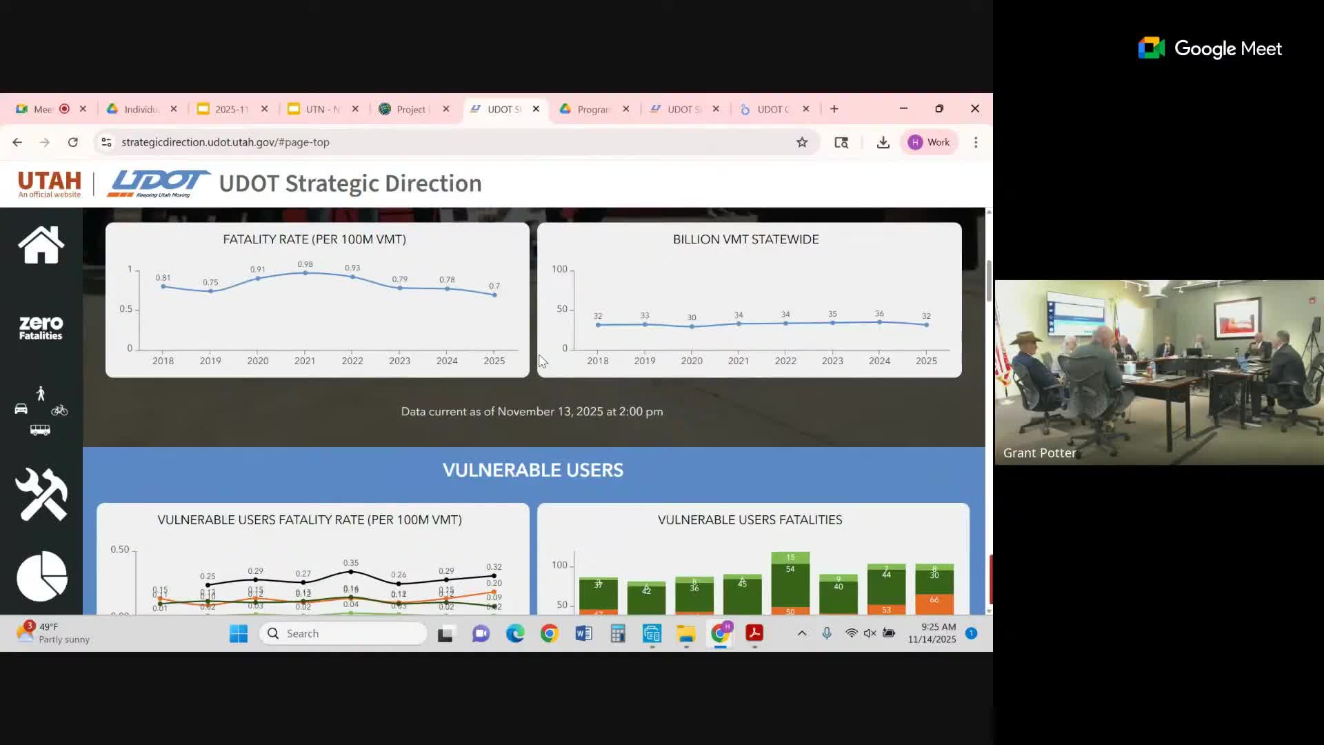 UDOT operations staff told the commission the department is making progress toward the goal of zero fatalities but that some vulnerable‑user categories require special focus.