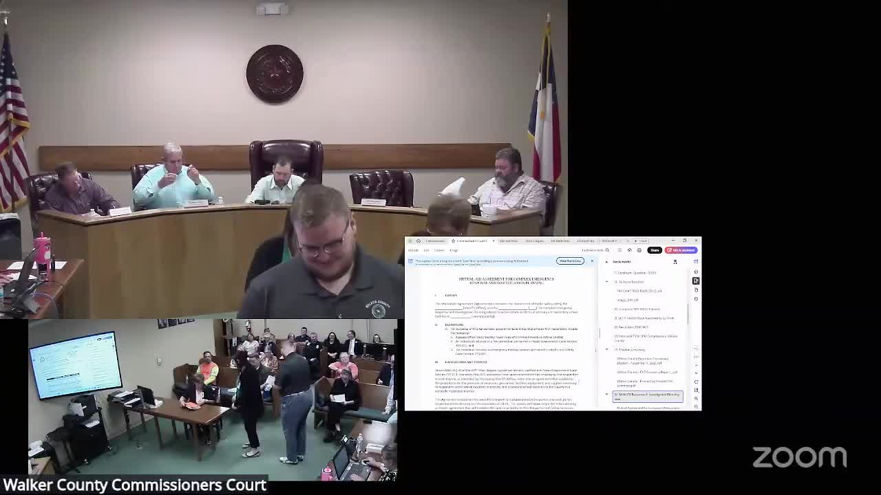 Walker County commissioners authorized Walker County EMS on Nov. 17 to sign a mutual‑aid agreement with the Texas Department of Public Safety pursuant to Texas House Bill 33.