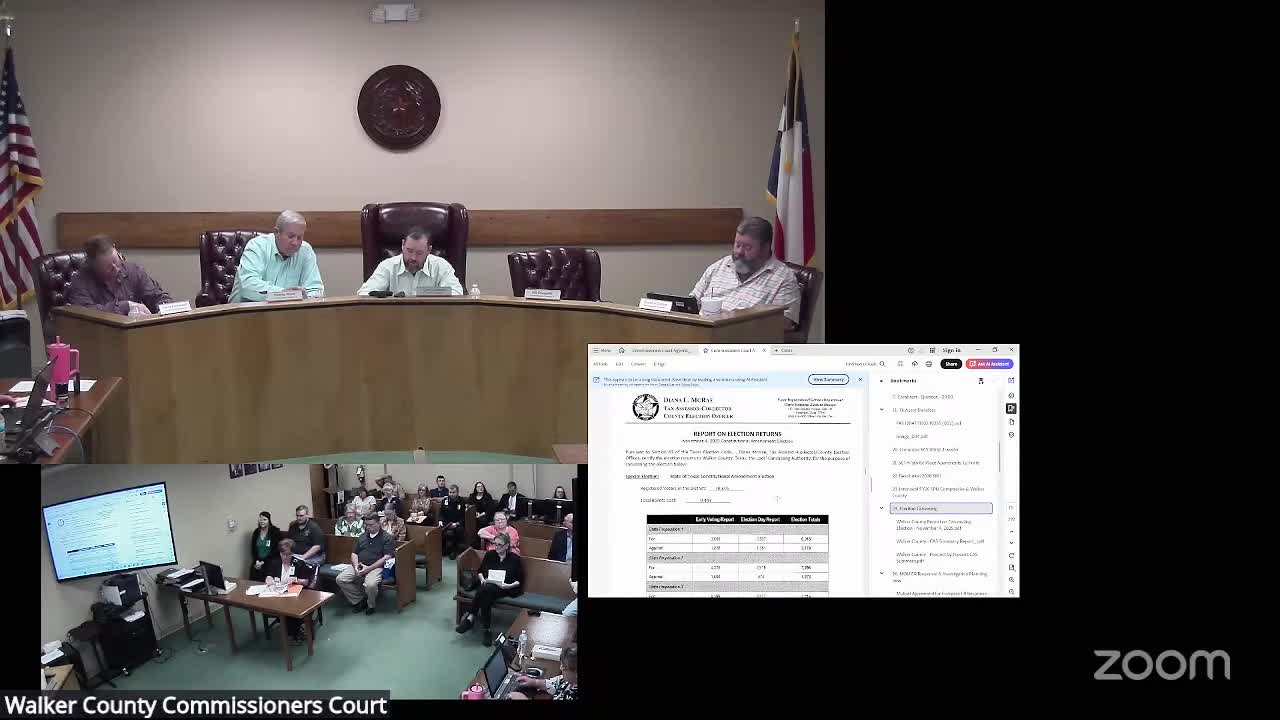 Walker County elections staff briefed the court on new state congressional maps that will split the county between districts 10 and 8. Commissioners approved a motion to seek outside legal counsel to advise on precinct, polling‑place and commissioner‑line changes while expressing concern about potential costs if litigation alters maps again.