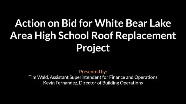 • White Bear Lake Area High School roof replacement: Board accepted the rebid and awarded the contract to Peterson Brothers Roofing for $347,735 (low bidder); staff noted the April bid by the same vendor had been $353,400 (roll call vote recorded as passing).