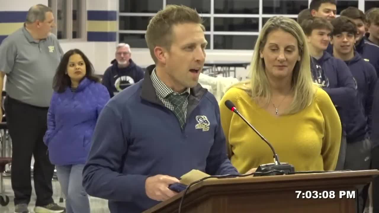 Athletic director Mike Miscavige reviewed the fall-season highlights: girls soccer finished the regular season 14-3-1 and won the PAC-10 championship, the football team rallied from a 0-4 start to capture the Liberty Division title and win the PAC championship game, and the girls volleyball team completed a 30-0 season, won the PAC championship, and secured the program’s first PIAA District 1 championship. Miscavige named head and assistant coaches for each team and noted the volleyball team reached the PIAA state final.