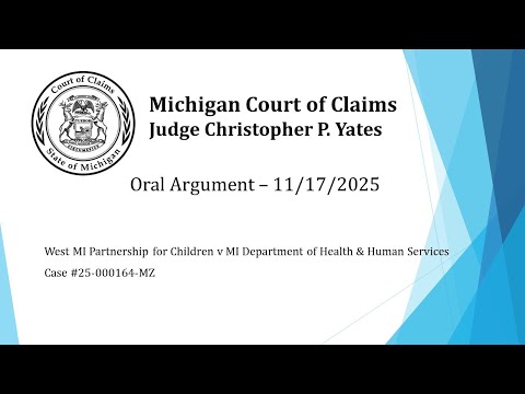 A judge in the Michigan Court of Claims heard hours of testimony on Oct. 1 in West Michigan Partnership for Children v. Michigan Department of Health and Human Services, case no. 25‑000164‑MZ, over whether the department must implement a prospective payment, performance‑based foster‑care system in Kent County and whether the private manager, West Michigan Partnership for Children (WMPC), is entitled to declaratory or injunctive relief after FY2026 appropriations omitted language that had previously guided funding.