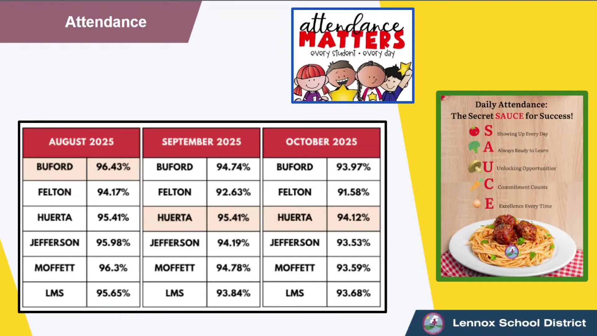Lenox Instructional Services presented newly released California Dashboard and SBAC data showing across-the-district gains in math and positive signals for English learners.