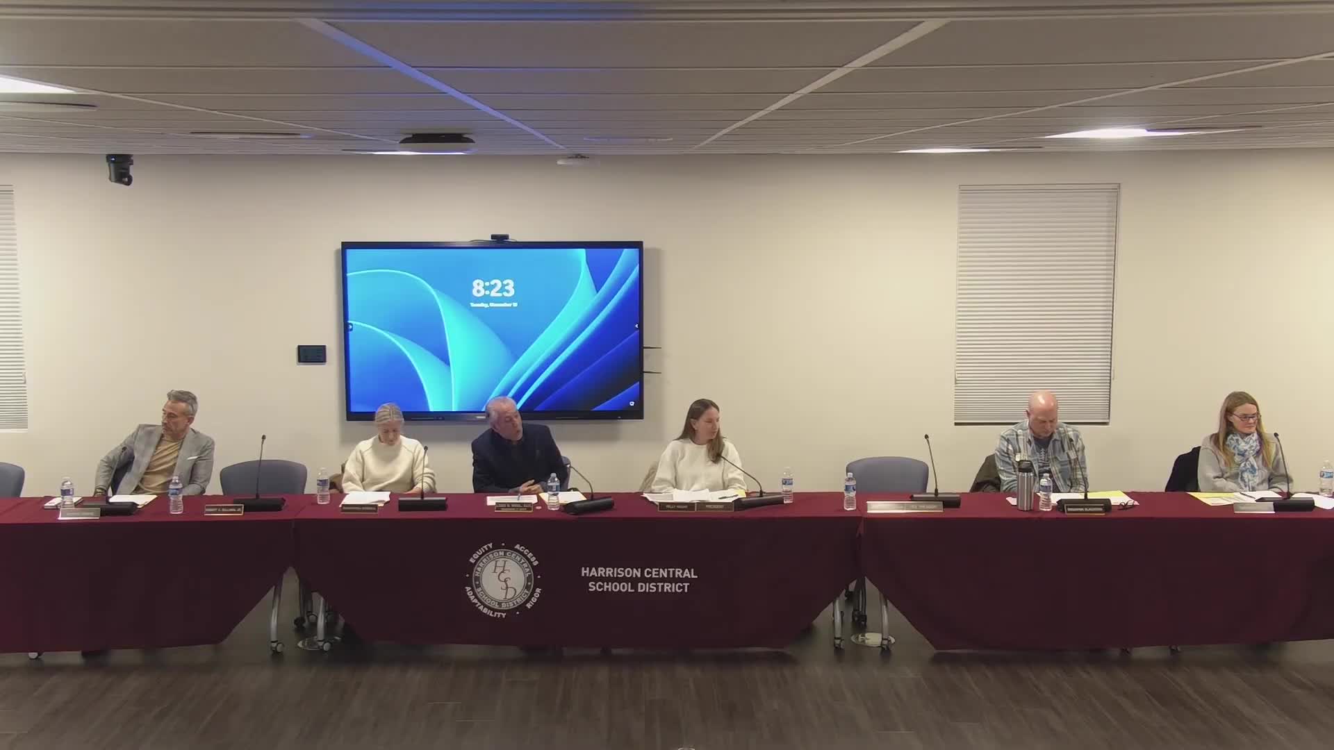The Harrison Central School District Board of Education on Nov. 18 approved a slate of routine consent items and heard updates on student achievements, an international visitor, and new safety procedures for an emergency early‑dismissal drill.