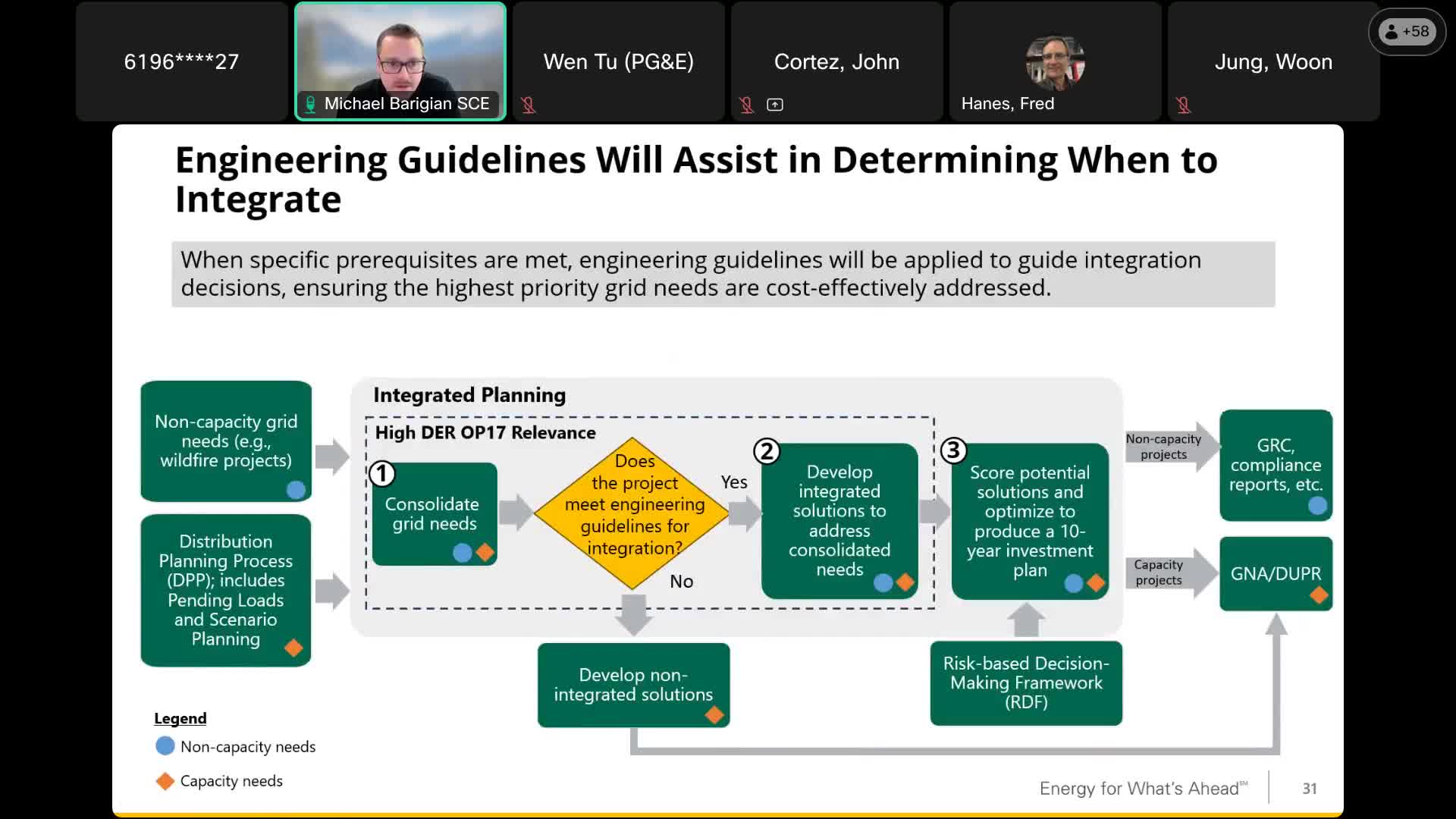 SCE and PG&E used the CPUC workshop to describe how engineering guidelines and upstream planning outputs would guide integrated‑planning decisions.