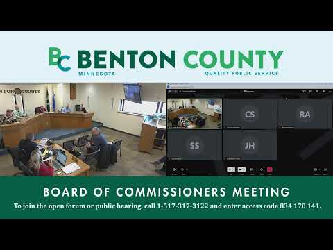 Betten/Benton Communications told the Benton County Board it has finished the county broadband buildout funded in part by ARPA and state grants, reporting roughly 251 miles plowed, 988 premises passed and 467 installs to date; commissioners praised the local partnership and asked staff to circulate line-extension resources for remaining isolated residences.
