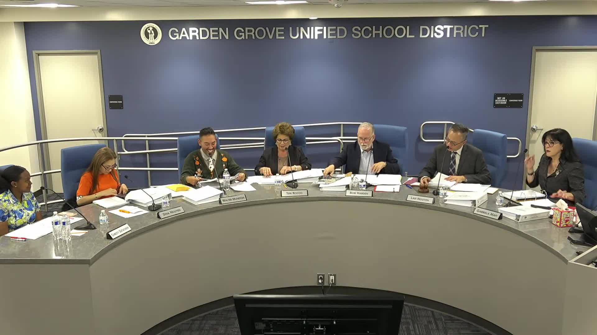 The Garden Grove USD board approved minutes, multiple memorandums of understanding for special-education services, a long consent agenda of procurement and contract renewals (including a reported purchase order/check total of $83,617,379.03), and personnel reports; trustees asked for vendor price-increase details to inform budgeting.