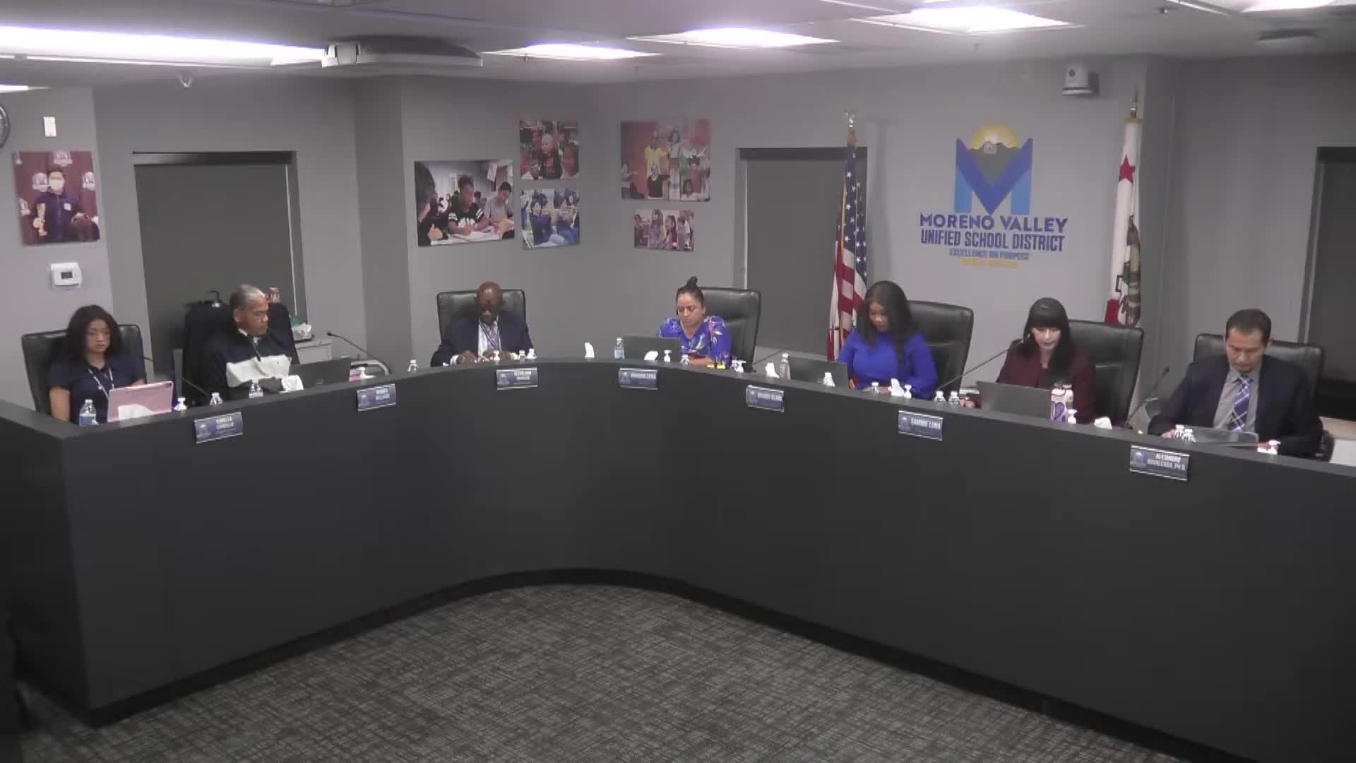 District leaders and five school principals told the Moreno Valley Unified board that decreases in some indicators mask persistent disparities: suspension rates for African American students rose at several sites even as other student groups improved.