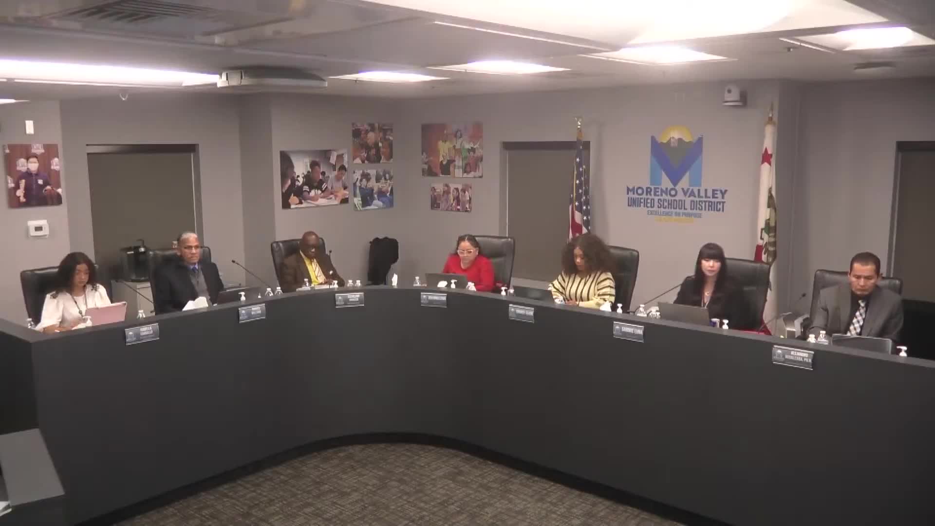 The board received the annual report from the Citizens Bond Oversight Committee (CBOC) covering Measure M and Measure X work across Moreno Valley Unified.