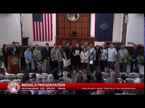 Senator Sabrina Salas Matanani, legislative secretary and chair of the Committee on Veterans Affairs, said the medals were created by Public Law 30-193 to ensure that the names of those who gave their lives in service to Guam and the United States are not forgotten. "We can never thank our veterans enough," she said in opening remarks, and described the presentation as finishing "a mission that began more than 15 years ago" under the late Speaker Ben Pangelinan.