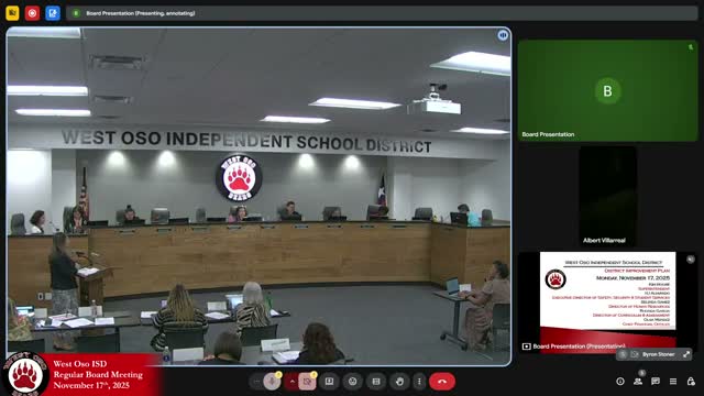 The West Oso ISD Board of Trustees voted to approve the district and campus improvement plans for the 2025–26 school year after administrators presented district-wide goals and campus-level targets.