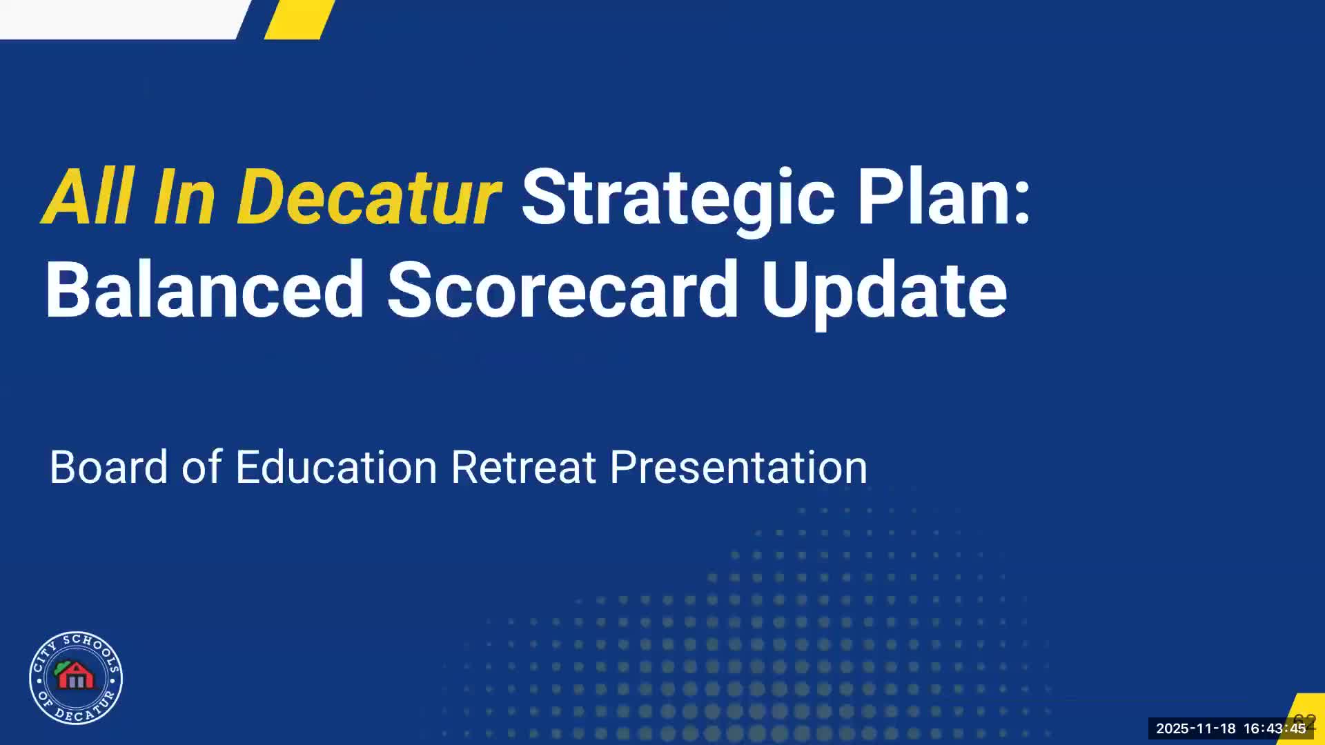 District staff updated the board on the balanced scorecard that tracks the board’s all‑indicator strategic plan. The public dashboard shows 16 strategic objectives under four accelerators and 43 associated KPIs. Staff reported that 23 of 43 indicators meet or exceed the district’s targets, four indicators are improving but below target, eight show no change or decline, and several are pending state data.