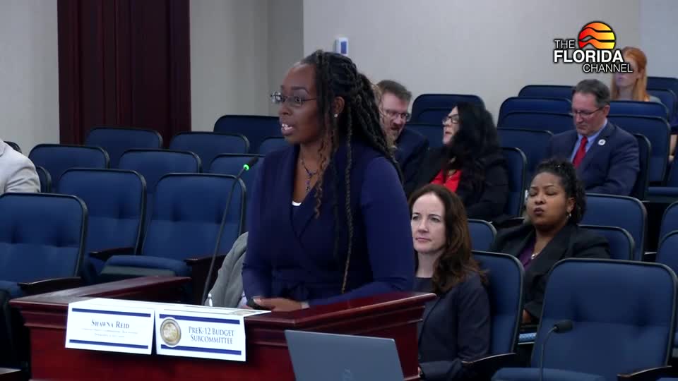 Assistant Deputy Commissioner Shawna Reed explained to the PreK—2 Budget Subcommittee that the Florida Education Identifier (FLEID) is a 14-character alphanumeric identifier assigned when a student first enrolls in a public K–12 district. Reed said DOE assigns FLEIDs after validating submitted files and matching records against a secure FLEID "vault." Strong matches are assigned the existing FLEID, near matches are flagged for local review, and unmatched records receive new FLEIDs.