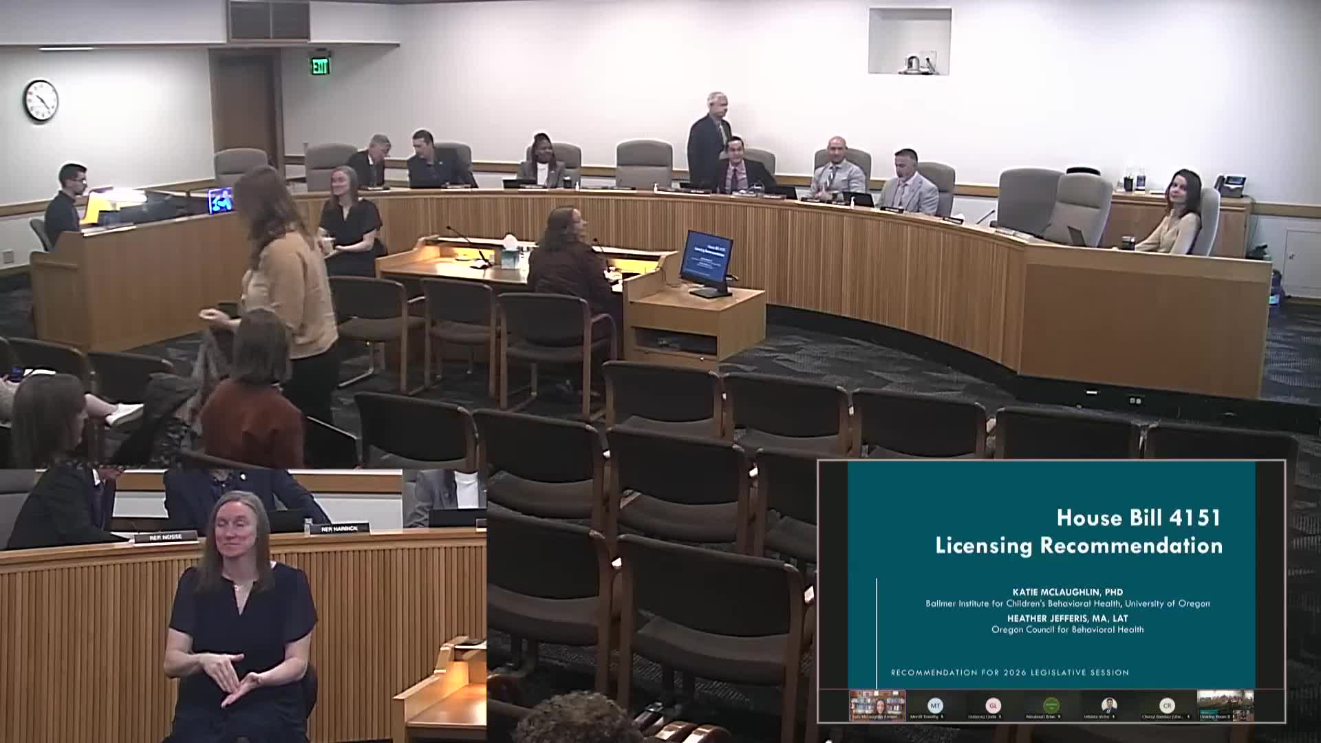 Dr. Kate McLaughlin (Ballmer Institute for Children’s Behavioral Health) told the committee the Systems of Care Advisory Council endorsed a detailed legislative recommendation to establish a distinct credential that would be overseen by the state mental health regulatory agency and implemented through the Board of Psychology. “The recommendation is for a new bachelor's level youth and family behavioral health provider license,” she said.