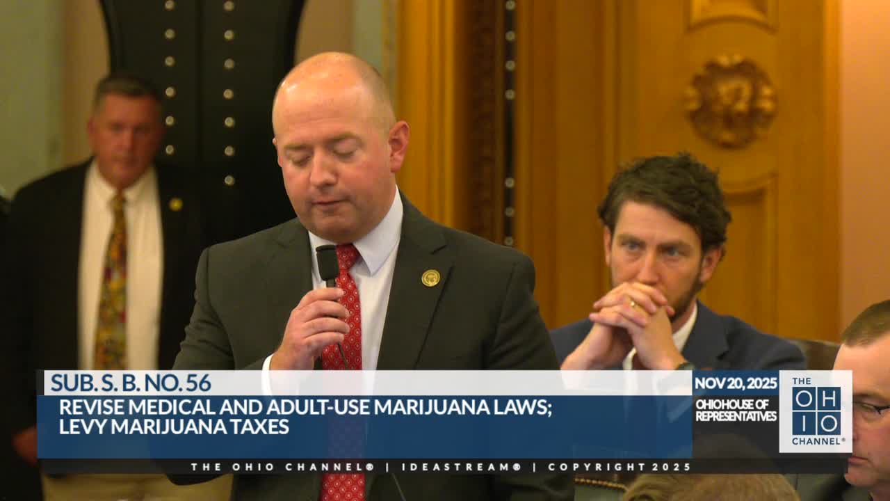 The House voted to adopt a conference report that implements Issue 2 (the statewide adult‑use cannabis constitutional amendment) but reflects later federal changes and Senate edits. Sponsors said the conference report preserves core house priorities — expanded expungement, home grow, sharing between adults, restrictions on marketing to minors, and a 36% host‑community allocation of marijuana tax revenues.