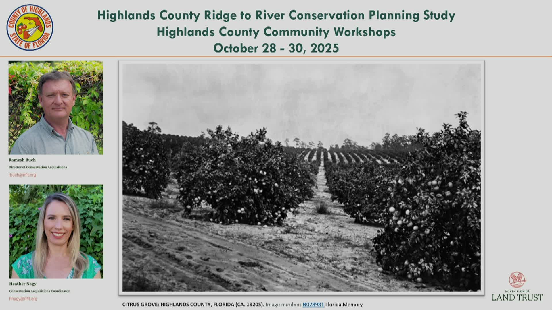 Highlands County Ridge to River community workshop (presenters: North Florida Land Trust) · October 28, 2025