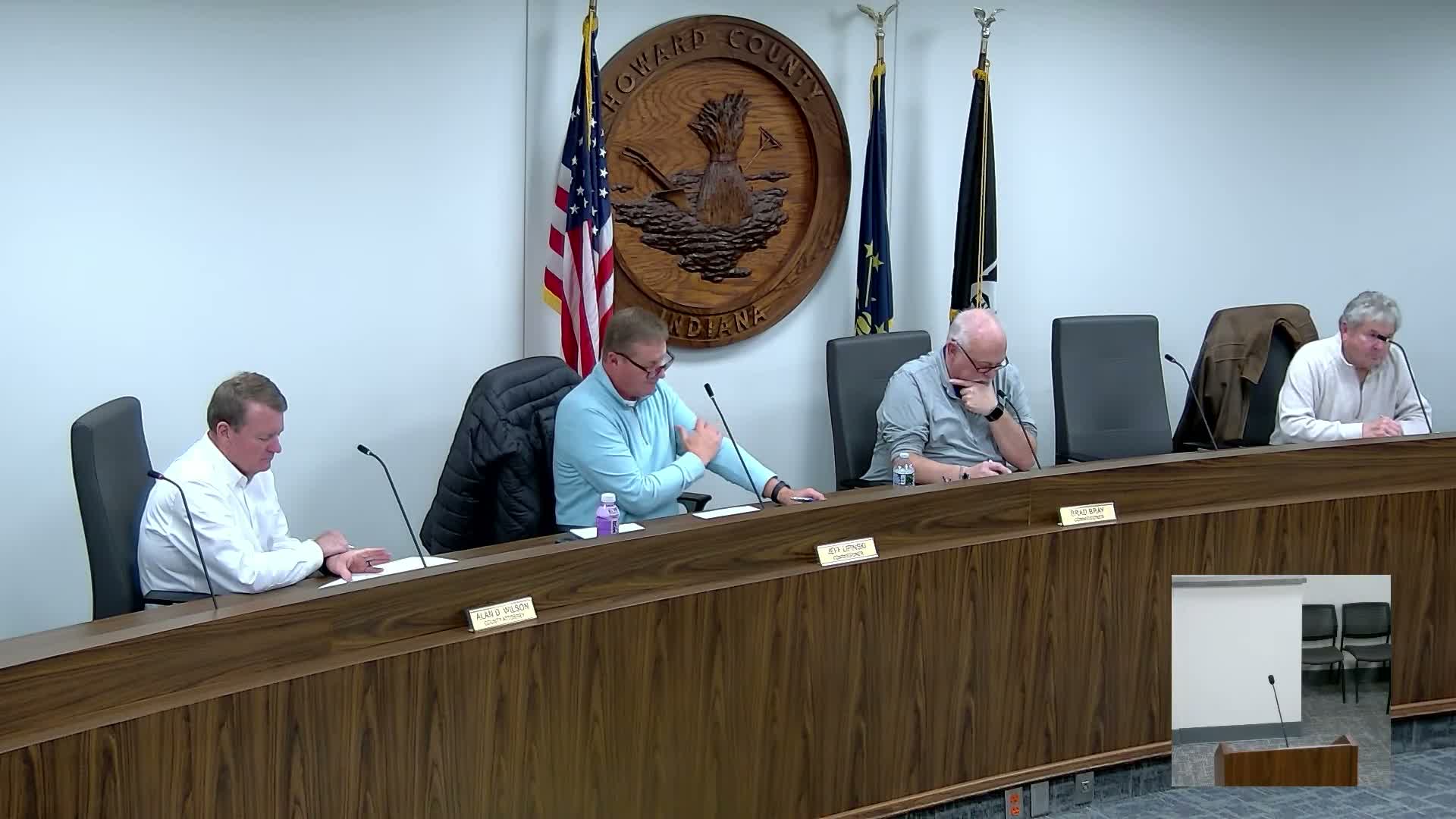 Quotes "A 2 lot subdivision encompassing 1.76 acres gross," — Brian Pierce, 40th Parallel Surveying, on Road Subdivision. "If he moves that driveway over there, it isn't gonna be blocking the water and backing it up on me," — Tom Chopp, neighboring property owner, asking whether a driveway will block his natural drain. "This does require a stormwater permit," — staff member (project reviewer) on Kokomo Oaks stormwater requirements.