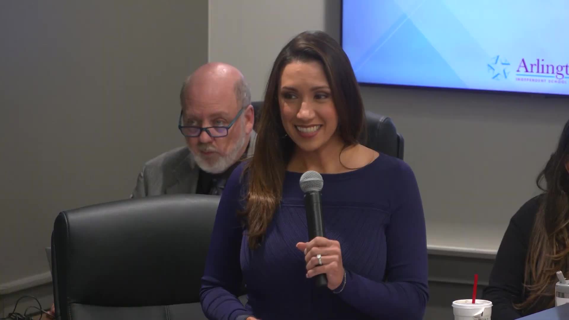 Chief Communications Officer Taina Northington introduced Webb Elementary student Aviel Estrada, who led the pledges. Northington then recognized four district high schools — Martin High School, Seguin High School, Arlington College and Career High School, and Arlington Collegiate High School — for placement on the US News & World Report best-high-schools list.