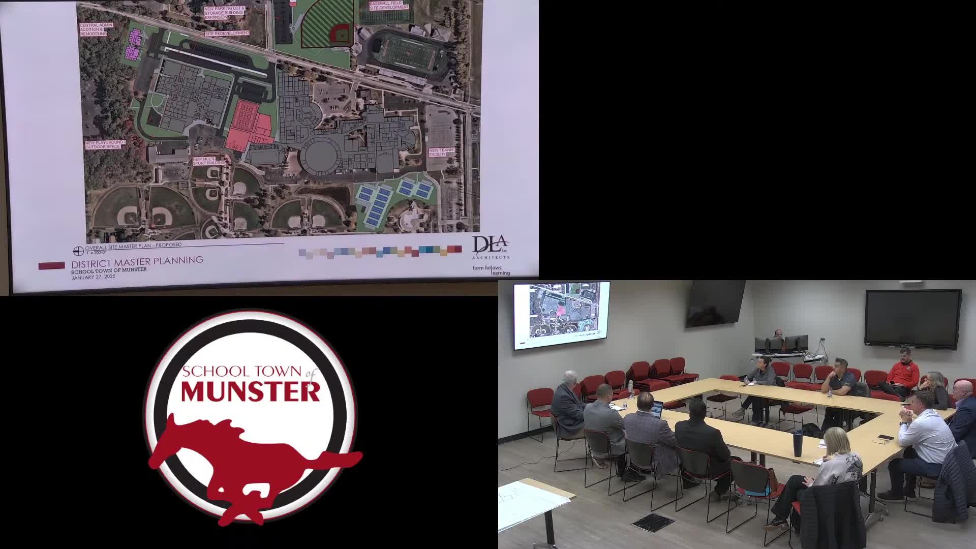 School Town of Munster officials on Jan. 27 reviewed detailed designs, schedule and budget estimates for a proposed multi-sport field house intended for athletics, practice space and district professional-development functions. Staff described a program that includes a full-width synthetic turf area, multiuse courts, a 60-meter straightaway, an expanded 8,500-square-foot weight room and co-located administrative/professional-development offices.