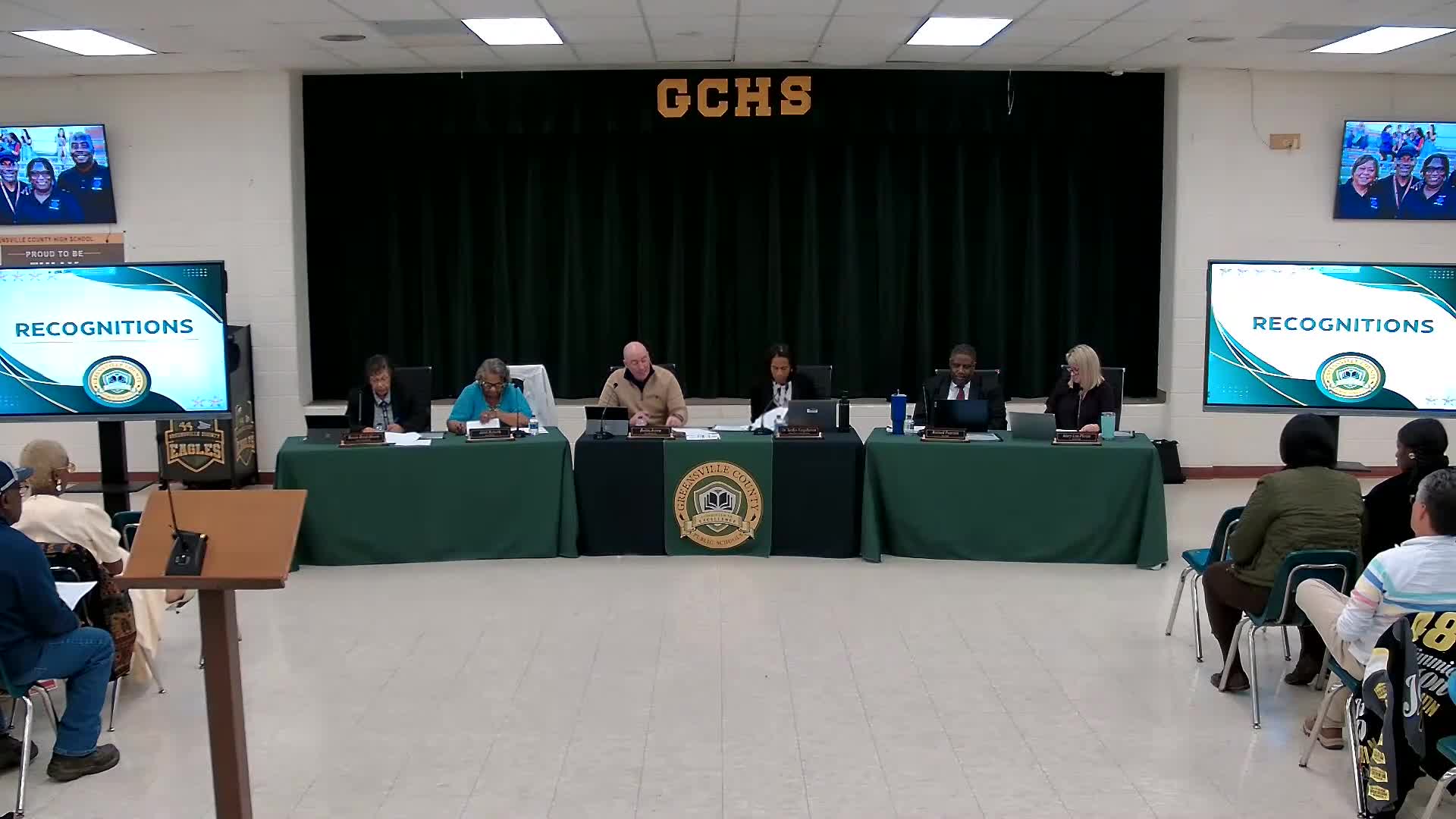 At its Nov. 10 meeting the Greensville County School Board approved the appointment of an 11th‑grade student representative, authorized a Beta Club overnight trip to Hampton, and took a first reading of seven revised policies recommended by VSBA to comply with Virginia law.