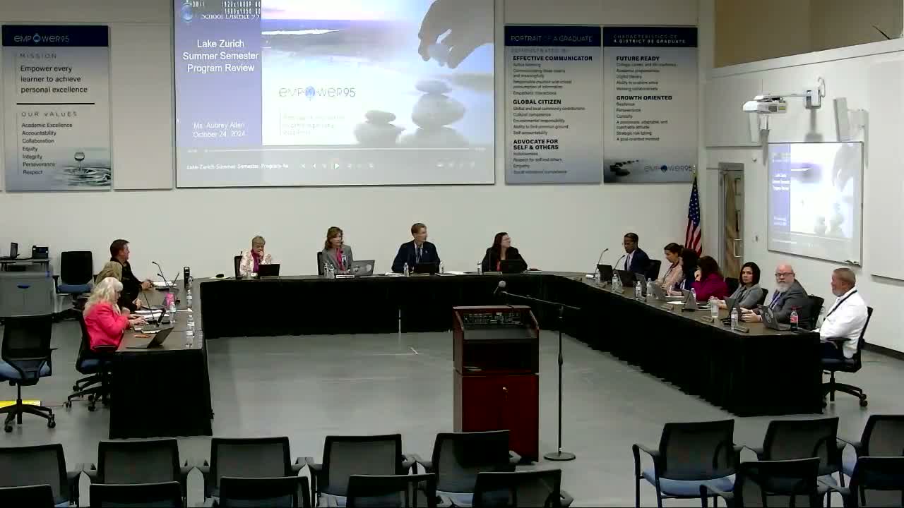 The Lake Zurich Community Unit School District 95 Board of Education spent a large portion of its Oct. 24 meeting debating how to address a near-$394,000 net expense for the district’s 2024 summer semester and whether to continue district‑provided transportation for K–8 programs.