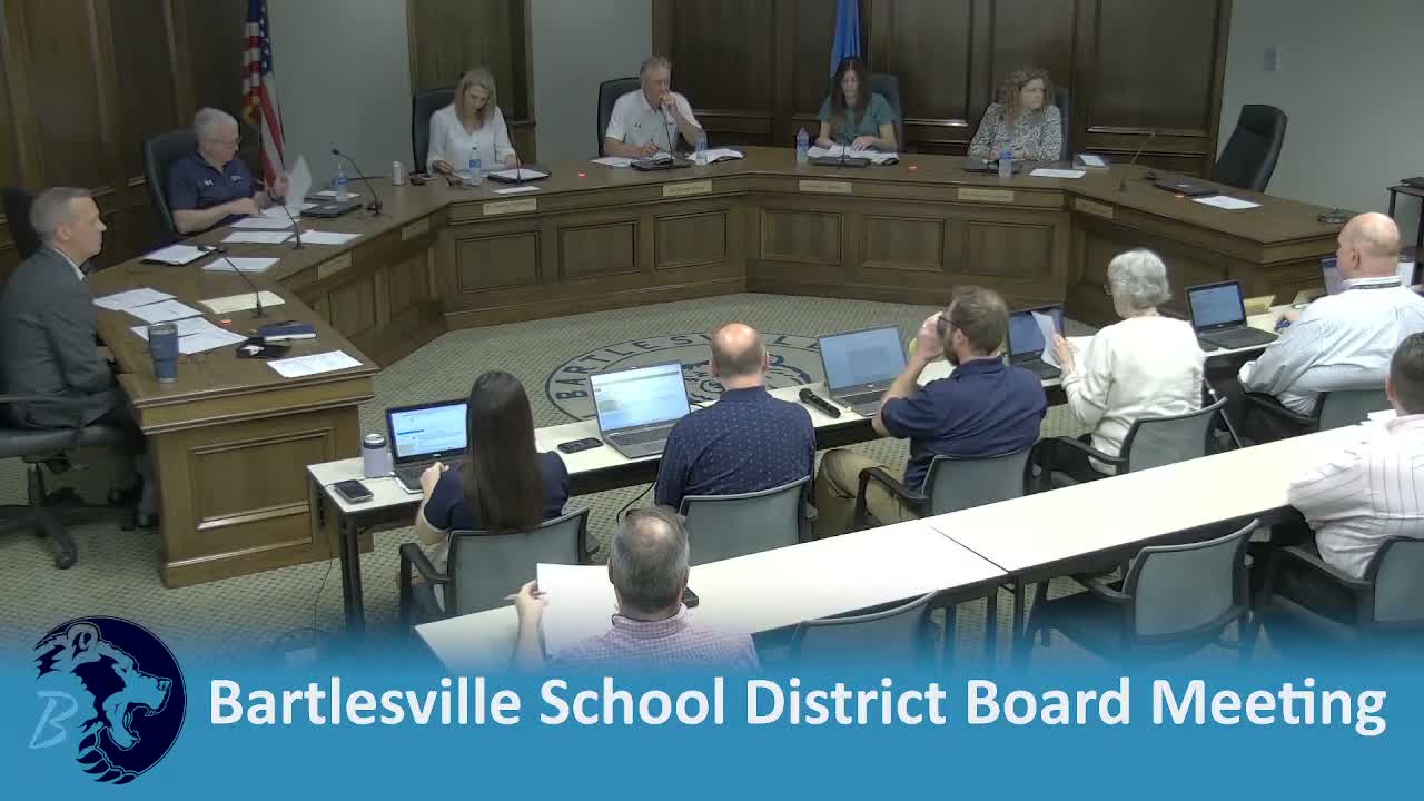 The Bartlesville School Board received bids and approved awarding the 2025 A Series tax-exempt bonds ($4,460,000) and the 2025 B Series taxable bonds ($1,035,000), both to low bidder BOK Financial Securities. The board also authorized issuance of the bonds.