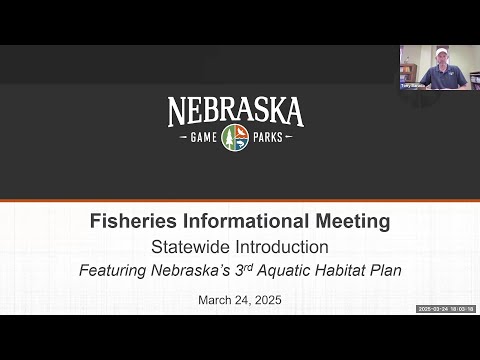 The plan and a longer project-by-project document are posted on NGPC’s website; staff solicited public feedback, reminded anglers of upcoming district meetings, and said they will follow up by email to answer remaining questions from the webinar.