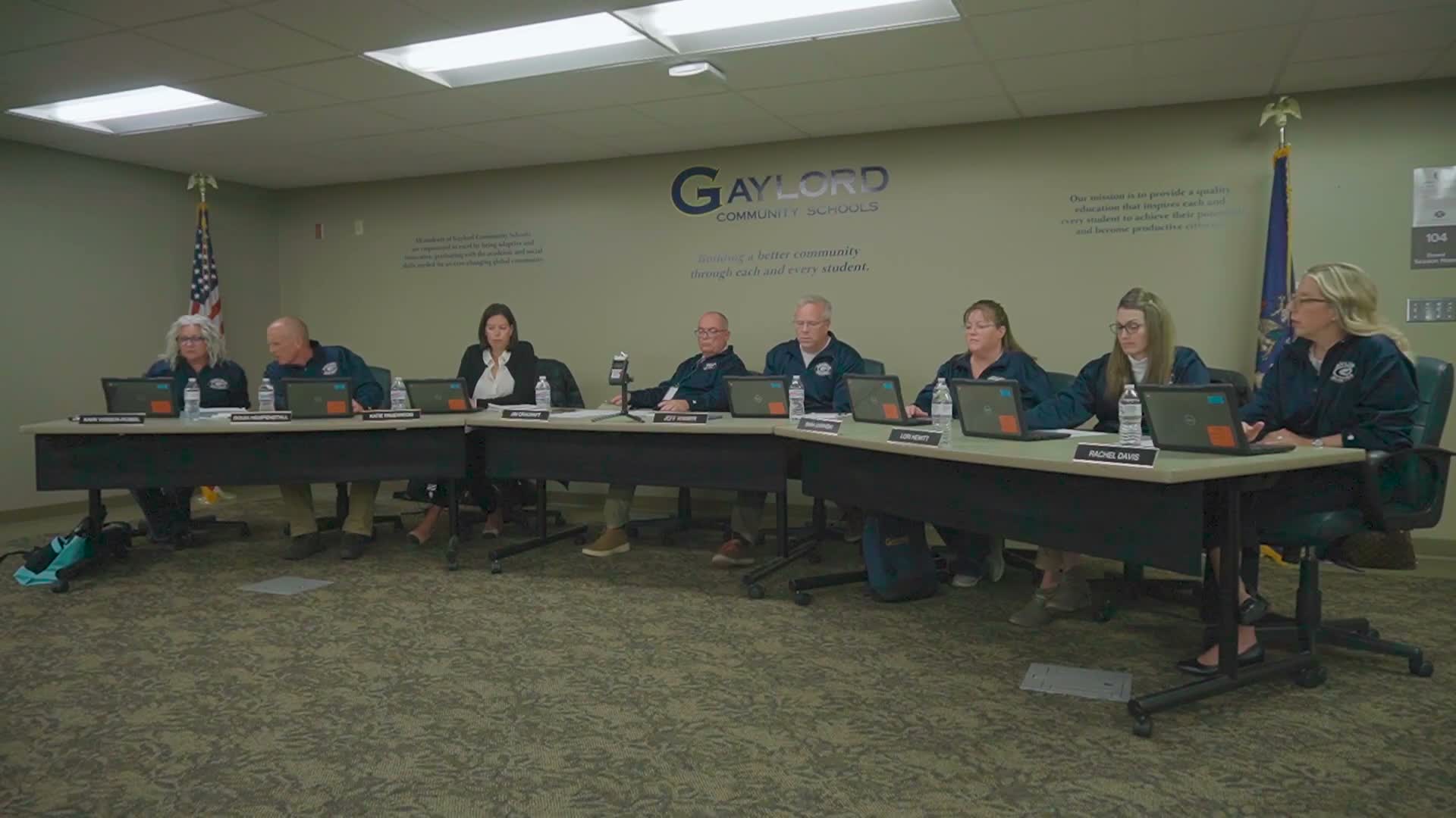At its regular meeting, the Gaylord Community Schools Board of Education approved routine and several personnel and facilities actions, and recorded unanimous votes on multiple disciplinary matters.
