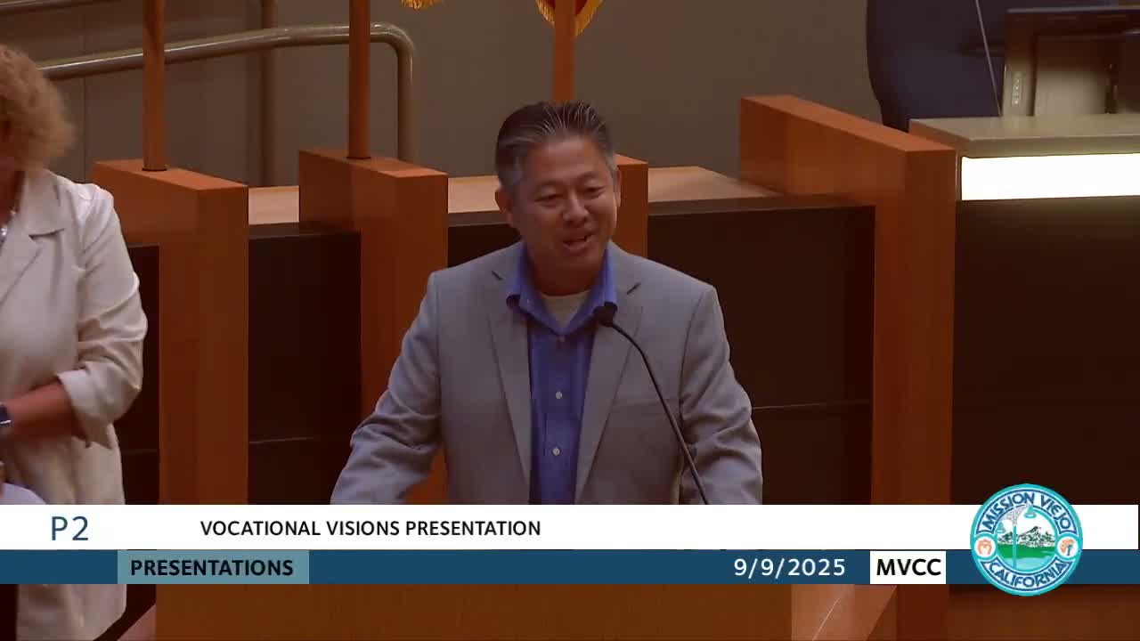 Vocational Visions told Mission Viejo council it serves more than 400 participants from North Orange County at two local facilities, offers supported employment and day‑training programs, and partners with the city (Parks & Rec) on work placements and community inclusion.