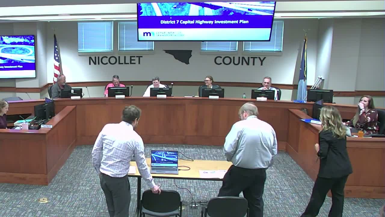 MnDOT District 7 told the Nicollet County Board that statewide transportation funding and a pending federal bill will affect local projects; presenters outlined current work on Highway 22, culvert replacements, a living snow fence project near Lafayette and future roundabouts in the St. Peter area.