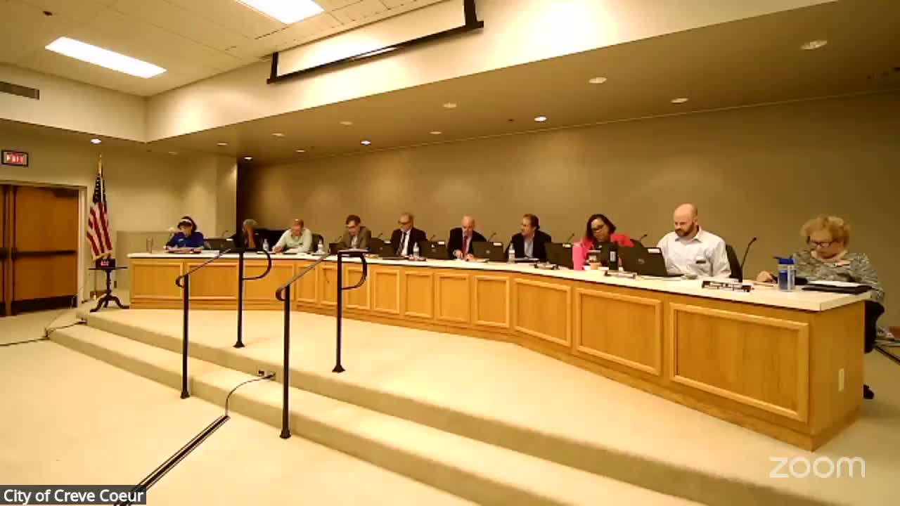 At this meeting the Creve Coeur City Council approved several resolutions and ordinances with recorded roll-call votes.