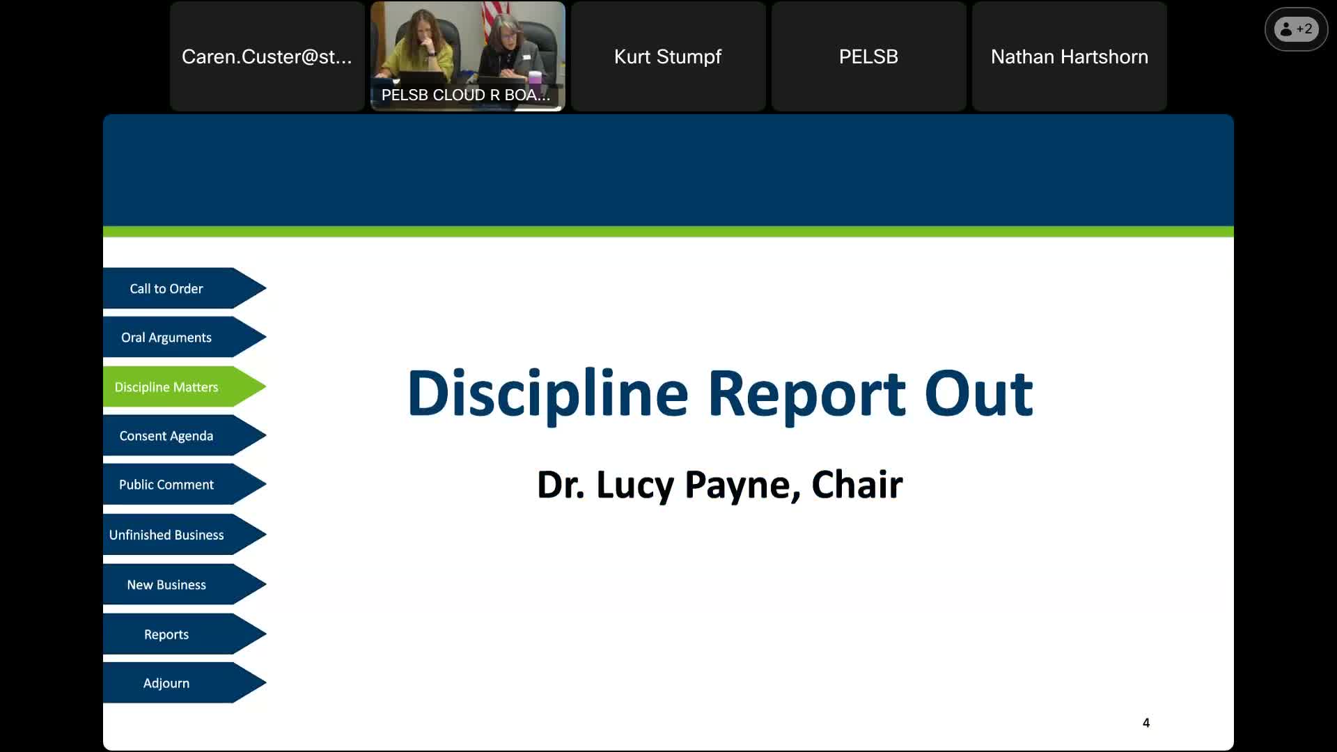 The board did not take public comment on these matters because they were handled in closed session. Any further public documentation, such as the full orders or stipulations, will be posted to the board’s rulemaking or disciplinary archives consistent with agency practice.