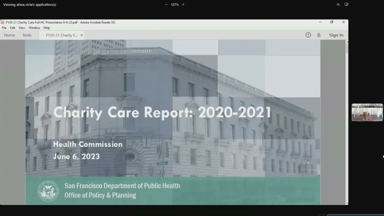 Max Gara, senior health program planner, presented the San Francisco Department of Public Health’s combined FY2019–2021 charity‑care report to the Health Commission.