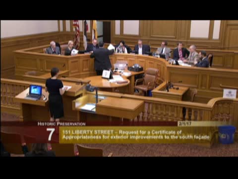 The Historic Preservation Commission approved a certificate of appropriateness Feb. 1 for restoration work at 151 Liberty Street, requiring material samples, detailed window schedules, preservation-enforcement site verification, and a staff-reviewed informational follow-up about rear-yard landscaping.